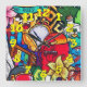 Graffiti-Hintergrund mit Graffiti-Nummern-13 Quadratische Wanduhr