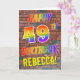 An der Vorderseite dieser lebendigen, aufregenden und auffälligen Geburtstagskarte steht die Meldung "HAPPY 49TH BIRTHDAY" mit Buchstaben mit einem farbigen Regenbogenmuster und einem personalisiert namenfarbenen Gelb auf einem Ziegelmauerhintergrund. Der Stil wird durch Graffiti oder Straßenkunst inspiriert, die an einer Wand gezeichnet werden. Im Inneren befindet sich eine Geburtstags-Grußbotschaft, die individuell angepasst werden kann. Eine lustige, glückliche, anpassbare Geburtstagskarte wie diese könnte dazu verwendet werden, jemandem, der seinen neunundvierzigsten Geburtstag feiert, eine Geburtstagsgrüßbotschaft zu senden. [~Z0000357]