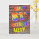 An der Vorderseite dieser auffälligen, lebendigen und lustigen Geburtstagskarte steht die Nachricht "HAPPY 51ST BIRTHDAY" mit Buchstaben mit einem farbigen Regenbogenmuster und einem editierbaren, gelben Namen auf einem Backsteinwandmuster. Der Stil wird durch Graffiti oder Straßenkunst inspiriert, die an der Wand gezeichnet werden. Im Inneren befindet sich eine personalisierte Geburtstagsgrüßbotschaft. Eine glückliche, lustige, bearbeitbare Geburtstagskarte wie diese könnte jemandem geschenkt werden, der seinen 51. Geburtstag feiert. [~Z0000357]