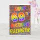 An der Vorderseite dieses auffälligen, lustigen und lebendigen Geburtstagskarten-Designs steht die Meldung "HAPPY 69TH BIRTHDAY" mit Buchstaben mit einem farbigen Regenbogenmuster und einem personalisiert namensfarbenen Gelb auf einem Backsteingebäude. Der Stil wird durch Graffiti oder Straßenkunst inspiriert, die an der Wand gezeichnet werden. Im Inneren befindet sich eine Geburtstags-Grußbotschaft, die personalisiert werden kann. Eine glückliche, lustige, anpassbare Geburtstagskarte wie diese könnte jemandem geschenkt werden, der seinen neunundsechzigsten Geburtstag feiert. [~Z0000357]