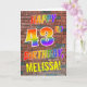 An der Vorderseite dieses auffälligen, lustigen und lebendigen Geburtstagskarten-Designs steht die Meldung "HAPPY 43RD BIRTHDAY" mit Buchstaben mit einem farbigen Regenbogenmuster und einem personalisiert namensfarbenen Gelb auf einem Backsteingebäude. Das Aussehen wird durch das Graffiti oder Straßenkunst inspiriert, das an der Wand gezeichnet wird. Im Inneren befindet sich eine individuell anpassbare Geburtstagsgrüßbotschaft. Eine glückliche, lustige, individuell gestaltete Geburtstagskarte wie diese könnte eine besondere Art sein, jemandes 43. Geburtstag zu feiern. [~Z0000357]