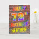 An der Vorderseite dieses auffälligen, spannenden und lustigen Geburtstagskarten-Designs steht die Nachricht "HAPPY 72ND BIRTHDAY" mit Buchstaben mit einem farbigen Regenbogenmuster und einem individuell einstellbaren, gelben Namen auf einem Backsteinwandmuster. Das Aussehen wird durch das Graffiti oder Straßenkunst inspiriert, das an der Wand gezeichnet wird. Im Inneren befindet sich eine individuell gestaltete Geburtstagsgrüßbotschaft. Eine glückliche, lustige, personalisierte Geburtstagskarte wie diese könnte eine besondere Art sein, jemandes siebzigsten Geburtstag zu feiern. [~Z0000357]