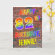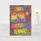 An der Vorderseite dieses auffälligen, lustigen und aufregenden Geburtstagskarten-Designs steht die Meldung "HAPPY 82ND BIRTHDAY" mit Buchstaben mit einem farbigen Regenbogenmuster und einem personalisiert namensfarbenen Gelb auf einem Backsteingebäude. Der Stil wird durch Graffiti oder Straßenkunst inspiriert, die an der Wand gezeichnet werden. Im Inneren befindet sich eine personalisierte Geburtstagsgrüßbotschaft. Eine lustige, fröhliche, maßgeschneiderte Geburtstagskarte wie diese könnte zum Feiern des zweiundachtzigsten Geburtstages von jemandem gegeben werden. [~Z0000357]