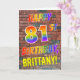 An der Vorderseite dieses aufregenden, lebendigen und lustigen Geburtstagskarten-Designs steht die Nachricht "HAPPY 81ST BIRTHDAY" mit Buchstaben mit einem farbigen Regenbogenmuster und einem gelben individuelle Name auf einem Wand-of-Stein-Muster-Hintergrund. Das Aussehen wird durch das Graffiti oder Straßenkunst inspiriert, das an einer Wand gezeichnet wird. Im Inneren befindet sich eine Geburtstags-Grußbotschaft, die personalisiert werden kann. Eine lustige, fröhliche, personalisierte Geburtstagskarte wie diese könnte dazu verwendet werden, jemandem, der seinen 81. Geburtstag feiert, eine Geburtstagsgrüßbotschaft zu senden. [~Z0000357]