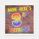 An der Vorderseite dieses aufregenden, lebendigen und auffälligen Geburtstags-Motivs steht ein individualisierbarer Name, und die Botschaft "3RD BIRTHDAY!" mit Buchstaben mit einem farbigen Regenbogenspektrum, inspiriert Farbverlaufsmuster, auf einem Wand-of-Stein inspiriert Musterhintergrund. Das Erscheinungsbild wird durch die an einer Wand gezeichnet Straßenkunst oder Graffiti inspiriert. So eine Fun Paper Servietten können bei einer Geburtstagsparty zum dritten Geburtstag von jemandem verwendet werden. [~Z0000367]