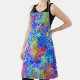 Diese Schürze zeichnet sich durch digitale Graffiti aus, die alle lebendigen Farben von Salzwasser-Fischen hat. Die verschiedenen Blautöne werden mit Gelb, Orange, lila, Kalkgrün, Rosa, Aqua, Schwarz vermischt. Die verschiedenen Texturen und Trübungen geben die Designtiefe.