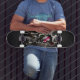 Un design urbain hip hop pour ce skateboard style art de graffiti avec sa tête de mort en forme de bombe de peinture. Die Sportbegeisterten der Skateboarder können hier ihre sportlichen Aktivitäten ausüben.