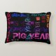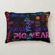 Geplant für 8 Buchstaben : PIG JAHR (7 + Platz) mit Jahr und chinesische Ideogramm des Schweins. Design auf Akzent Kissen mit schwarzem Hintergrund. Sie können die Hintergrundfarbe und den Text (Farbe, Schriftart, Größe und Position) leicht ändern, indem Sie auf die Schaltfläche Personalisieren oder anpassen klicken. Freude und unkonventionelle Begrüßung für das chinesische Neujahr des Schweins 2019.