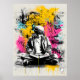 Graffiti-inspiriertes Street Art Poster eines Jungen, der liest, mit Schablonendetails und hellen Spritzen von Gelb, Rosa und Blau. Ein leistungsstarkes urbanes Design für moderne Wohngestaltung, Klassenzimmer oder Geschenke für Graffiti- und Straßenkulturfans.