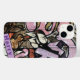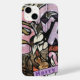 Handy Gehäuse in einem bunten Graffiti Stil. Fügen Sie den Namen des Telefonbesitzers hinzu. Die Hauptfarben sind lila, rosa und lila.
