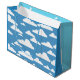 Eine klassische Geschenktasche mit einem grafischen Illustrationsmuster des blauen Himmels mit flauschigen weißen Wolken. Ideal für Babyduschen. Verfügbar in anderen Optionen. Besuchen Sie unseren Shop für weitere Geschenktaschen und andere stilvolle Artikel.