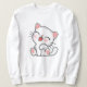 Das Katzenmuster passt zum weißen Pullover, der besonders exquisit, schön, atmosphärisch und schön aussieht.