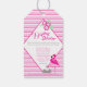 Niedliches pinkfarbenes Flamingo, stehend auf einem Fuß Babydusche Duschanleitung und Geschenkanhänger. Original grafische Kunst und Design von Sarah Trett www.sarahtrett.com für www.mylittleeden.com auf zazzle.