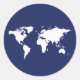 Grafik-White-Weltkarte auf blau Runder Aufkleber