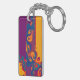 Grafikdesign Muster - violett orange + Text Schlüsselanhänger