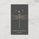 Die moderne Ohrring-Display-Karte bietet eine goldene Himmelsdrachenfliege mit einer halbmondfarbenen Abbildung auf dunkelgrauem Hintergrund mit weißem, zeitgenössischem Text vorne und einen grauen Text mit anpassbarem QR-Code für Ihre Website oder soziale Medien auf der Rückseite.