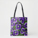 Diese Tasche zeichnet sich durch schöne, grafische, lebendige, lila Stiefmütterchen aus, die sich durch die grünen Blätter hervorheben. Tragen Sie Ihr Wesentliches in Stil und machen Sie eine Aussage mit dieser Tasche mit der perfekten Mischung aus Mode und Funktion!