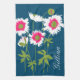 Grafische Mohnblüten in weißem, rosa, grünem Blau Geschirrtuch