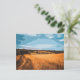 Teilen Sie die Schönheit der Natur mit dieser auffallenden Postkarte. Mit einer lebendigen, grafischen Illustration einer gewundenen Sommerstraße durch goldene Weizenfelder vor einem dramatischen blauen Himmel. Dieses posterisierte Landschaftsdesign ist perfekt, um warme Grüße, Reisemitteilungen zu senden oder als Miniatur-Kunstwerk zu behalten.
