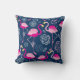 Grafisches Muster rosa Flamingos auf dunkelblau b Kissen
