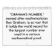 " GRAHAM ZAHL," genannt nach Mathematiker Ron Graham, ist so beträchtlich, dass sie den Weltrekord für die größte Zahl hält, die überhaupt in einem ernsten mathematischen Beweis verwendet wird. Graham Zahl ist viel größer als andere große Zahlen wie ein googol und ein googolplex. Tatsächlich ist das wahrnehmbare Universum, zum einer schriftlichen Darstellung von Graham Zahl zu enthalten weites zu kleines.