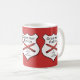 Die Grammatik-Polizei ist hier! Eine lustige Kaffee-Tasse für den Lehrer oder den Grammatik-Nerd, Abzeichen 3 zeigend formte weiße Grafiken mit gekreuzten roten Zeichenstiften und "Grammatik-Polizei, um in der schwarzen Art zu dienen und zu korrigieren". Die Hintergrundfarbe ist auf dem redigierenmenü kundengerecht.