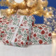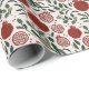 Granada: Spanische Granatapfel ist ein sich wiederholendes Muster in Rot, Bordeaux, Grün, Rot. Ein elegantes und lebendiges Design aus wiederholten Blätter, ganz und halbiert Granatapfelsen und rubinroten Samen, das an einen Obstgarten in Spanien erinnert.