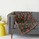 Granatäpfel mit üppigen Blätter und reichhaltigen roten Früchten erstrecken sich über einen schwarzen Hintergrund. Eine sekundäre Ebene verblasst subtil, wodurch Tiefe hinzugefügt wird. Traditionell auf Papier mit Markern gemalt, werden die Elemente gescannt und in Fotoshop zu einem Muster zusammengesetzt.