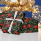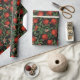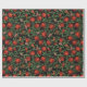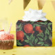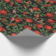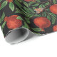 Granatäpfel mit üppigen Blätter und reichhaltigen roten Früchten erstrecken sich über einen schwarzen Hintergrund. Eine sekundäre Ebene verblasst subtil, wodurch Tiefe hinzugefügt wird. Traditionell auf Papier mit Markern gemalt, werden die Elemente gescannt und in Fotoshop zu einem Muster zusammengesetzt.