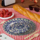 Granatapfel-handgemachte blaue u. weiße Tonwaren Pappteller