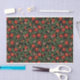 Granatäpfel mit üppigen Blätter und reichhaltigen roten Früchten erstrecken sich über einen schwarzen Hintergrund. Eine sekundäre Ebene verblasst subtil, wodurch Tiefe hinzugefügt wird. Traditionell auf Papier mit Markern gemalt, werden die Elemente gescannt und in Fotoshop zu einem Muster zusammengesetzt.
