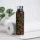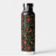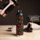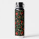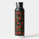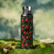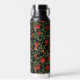 Granatäpfel mit üppigen Blätter und reichhaltigen roten Früchten erstrecken sich über einen schwarzen Hintergrund. Eine sekundäre Ebene verblasst subtil, wodurch Tiefe hinzugefügt wird. Traditionell auf Papier mit Markern gemalt, werden die Elemente gescannt und in Fotoshop zu einem Muster zusammengesetzt.