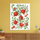 Granatäpfel mit üppigen Blätter und reichhaltigen roten Früchten erstrecken sich über einen schwarzen Hintergrund. Eine sekundäre Ebene verblasst subtil, wodurch Tiefe hinzugefügt wird. Traditionell auf Papier mit Markern gemalt, werden die Elemente gescannt und in Fotoshop zu einem Muster zusammengesetzt.