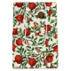 Granatäpfel mit üppigen Blätter und reichhaltigen roten Früchten erstrecken sich über einen schwarzen Hintergrund. Eine sekundäre Ebene verblasst subtil, wodurch Tiefe hinzugefügt wird. Traditionell auf Papier mit Markern gemalt, werden die Elemente gescannt und in Fotoshop zu einem Muster zusammengesetzt.