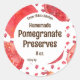 Ein Konservenkleber mit leuchtend roten Granatapfelaten, illustriert mit Aquarellfarbe, die Sie mit Ihren Produktdetails und Ihrer persönlichen Nachricht zusammen mit dem Herstellungsdatum des Produkts anpassen können.