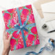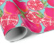 Dieses farbenfrohe Verpackungspapier weist ein sich wiederholendes Muster gemalteter Granatapfelfrüchte auf.