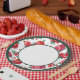Genießen Sie köstliche Speisen in unseren Tellern aus dem grünen & roten Granatapfelpapier mit einer botanischen Aquarell-Abbildung von frisch gepflückten Granatapfelaten aus dem Obstgarten! Ideal für Ihr Party im Garten, Park, für Ihre Picknick und das ganze Jahr über!
