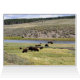 Der Cover dieser Karte bietet einen Blick auf die Untergelbsteinfälle von Artist Point im Yellowstone Nationalpark in Wyoming. Der Fluss Yellowstone mündet nördlich vom Yellowstone Lake ab, verlasse das Hayden Valley und fällt zuerst über die Upper Yellowstone Falls und dann 250 m flussabwärts über die Lower Yellowstone Falls, wo er dann den Grand Canyon des Yellowstone erreicht, der bis zu 3000 m tief ist. Die unteren Wasserfälle sind 94 m hoch oder fast doppelt so hoch wie Niagara, wenn auch nicht annähernd so breit. Auf der Innenseite der Karte befindet sich eine Herde von Bison entlang des Yellowstone River im Hayden Valley. Auf der Rückseite der Karte paddeln vier Kajakfahrer in Richtung Geyser Kone im Yellowstone Lake.