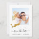 Lass den Gästen wissen, Save the Date für Ihre Hochzeit mit dieser hübsch minimalistischen Fotokarte mit einer Karte Kontur des Ortes Ihrer Veranstaltung.