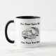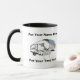 Diese 11oz Kaffee Tasse verfügt über einen Trailer, ähnlich einem Grand Design Reflektion 28BH Sattelrad. Das Innere der Tasse und die Grifffarbe können in verschiedene Farben geändert werden. Sie können den Text oben und unten personalisieren, um zu sagen, was Sie wollen. Zum Beispiel, oben könnte man seinen Familiennamen haben und unten könnte man "Happy Campers" sagen. Es ist ein großartiges Geschenk für sich selbst oder das Camping Freund von Ihnen. Stellen Sie sicher, dass Sie in meinem Zazzle-Shop andere Grand-Design-Produkte Karo machen
