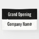 Ein großartiges Eröffnungsbanner lasse der Welt zu wissen, dass Ihr neues Unternehmen seine Türen für die Öffentlichkeit geöffnet hat. Dieses Banner hat oben einen schwarzen Streifen. Der weiße Bildschirmtext befindet sich auf dem schwarzen Streifen. Der untere Streifen ist weiß und hat schwarzen Text für den Firmennamen. Alle Texte können bearbeitet oder gelöscht werden.