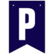 These dark blue and white bunting flags spell 'Grand Opening!'. There are also three flags you can display your company logo.