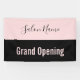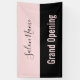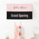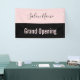 Ein Banner lasse jedem zu wissen, dass Ihr Schönheitssalon für Geschäftsreisende geöffnet ist. Der blassrosa Text am unteren Rand sagt "Grand Opening". Der rosa Text ist auf einem schwarzen Streifen. Ein rosa Streifen oben hat ein elegantes schwarzes Drehbuch für den Namen des Schönheitssalons.