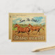 Vintage Grand Prairie Save the Date Postkarten mit zwei wunderschönen Viertelpferden, die in dieser rustikalen Landschaft Western Ranch zusammen galoppieren. Dieses coole Retro-Design aus der Mitte des Jahrhunderts ist der perfekte Weg, um Gäste in Ihre Grand Prairie Texas Hochzeit in Urlaubsort zu bringen.