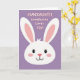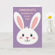This card shows a front-facing white bunny on a soft pastel lavender background, giving the scene a gentle, friendly mood 🐰. The bunny’s long ears reach upward and frame the message area, as if it’s leaning in close like a sweet little companion. Its face is kept simple with large round black eyes, a small pink nose, and a slight curved smile that reads like quiet affection. Light pink oval blush marks sit on both cheeks, adding a tender, caring look that suits a close family bond. Centered above the bunny’s head, the text reads “GRANDDAUGHTER, somebunny Loves YOU!” in magenta lettering with a thin white outline. The word “YOU!” stands out at the end, making the message feel extra direct and warm without crowding the design 🌷. The overall colors stay soft—lavender, white, and pink—so the character and message stay easy to notice. The bunny’s ears, eyes, nose, and blush are the main details against the smooth lavender field.