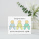 Drei Cartoon Babys, die pastellfarbene Romper-Anzüge tragen, und die Worte "Grandeleltern zu Triplets".