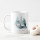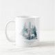 Weißes Hirsch mit Goldgeweih im Vordergrund zur Aquarellfarbe, aquamariner Kiefernwald. "Erstjährige Großeltern - Namensvorlage - Jahresvorlage" unter aquamarin.