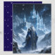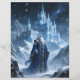The King of Ice and Snow stands outside his ice castle in the wintery mountains, as stars fill the night sky. Beautiful, Gothic fantasy image on this winter-themed scrapbook paper. The back is plain, dark blue with snow falling.