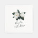 Diese eleganten Gartenservietten, die auf unsere Hochzeitskollektion von Grandiflora abgestimmt sind, sind mit handgeschriebenen Schriftzeichen versehen, die durch eine Mischung aus weißen magnolischen Blume und dunkelgrünen Blätter ergänzt werden.