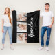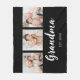 Black White Grandma Established Elegant Script 3 Photo Black Fleece Blanket. To customize, replace the photos and change the year.